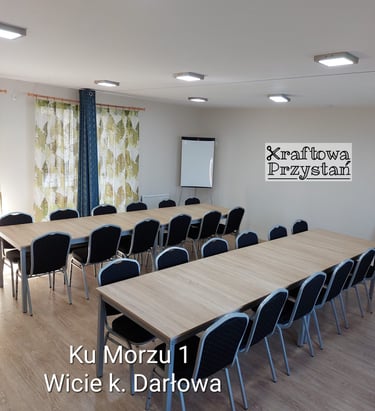 Sala znajduje się w nadmorskiej miejscowości Wicie, na ulicy Ku Morzu 1. Jest to nasz budynek, mamy też tam pokoje dla Gości. Po szczegóły zajrzyj na stronę kumorzu1wicie.pl